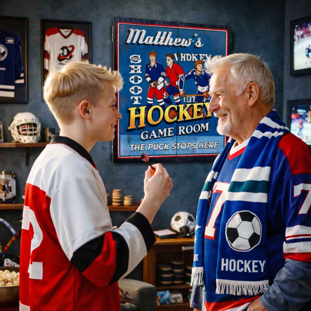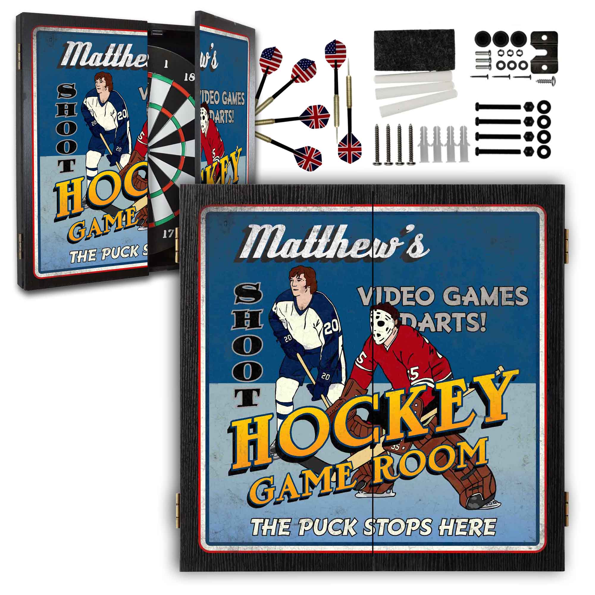 Bring rink-side energy straight into your home with this Personalized Hockey Game Room Dartboard Cabinet, custom designed with your name proudly featured in the artwork. Whether it’s for a teen hockey bedroom, man cave, basement rec room, or sports-themed game room, this custom hockey dartboard cabinet creates a bold focal point that celebrates the love of the game.