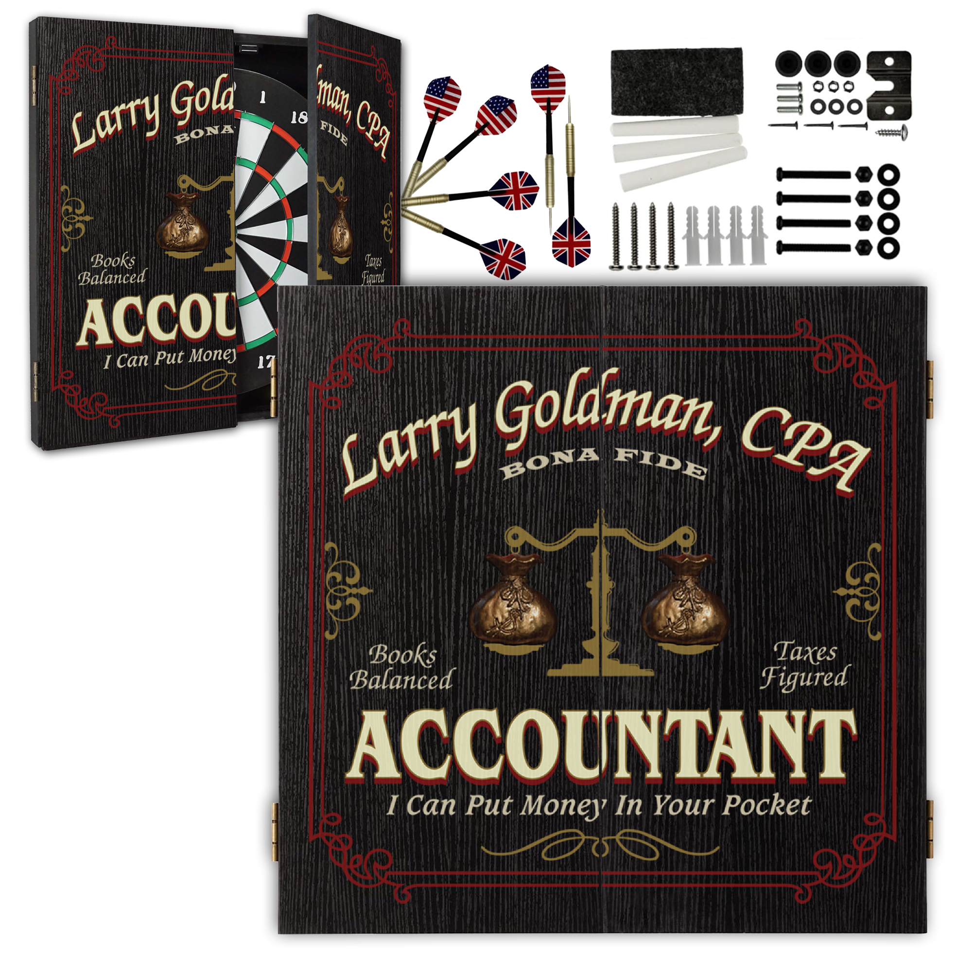 The Personalized Accountant Dartboard Cabinet Set is the perfect custom gift for CPAs, accountants, tax professionals, and finance pros who deserve something as sharp as their skills.