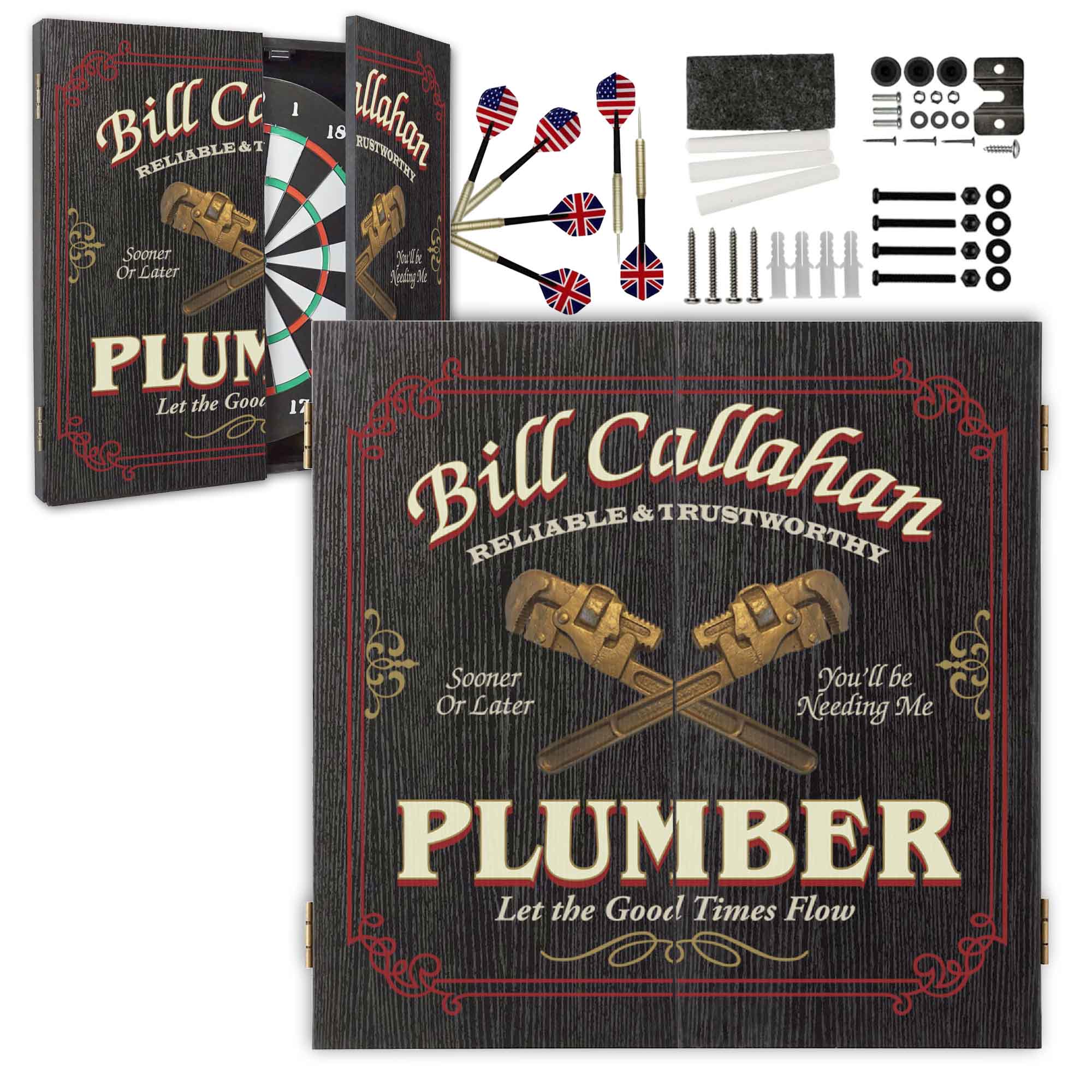 Whether it’s for a professional plumber, plumbing business owner, apprentice, or retired tradesman, this dartboard cabinet adds personality and fun to: