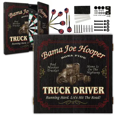 Honor the hard-working road warrior in your life with this Personalized Truck Driver Dartboard Cabinet Set, custom designed with their name boldly displayed front and center.